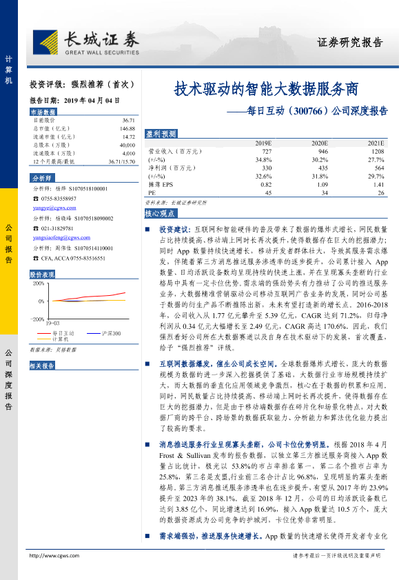 【长城证券】【20190404】20190404-长城证券-每日互动-300766.SZ-公司深度报告:技术驱动的智能大数据服务商-33页