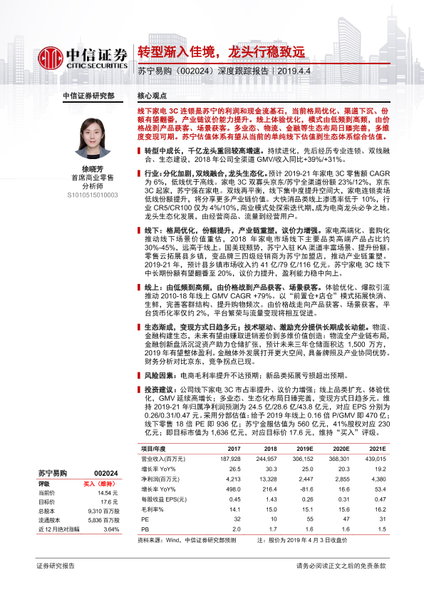 【中信证券】【20190404】20190404-中信证券-苏宁易购-002024.SZ-深度跟踪报告:转型渐入佳境,龙头行稳致远-48页