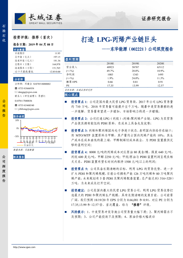 【长城证券】【20190408】20190408-长城证券-东华能源-002221.SZ-公司深度报告:打造LPG-丙烯产业链巨头-15页