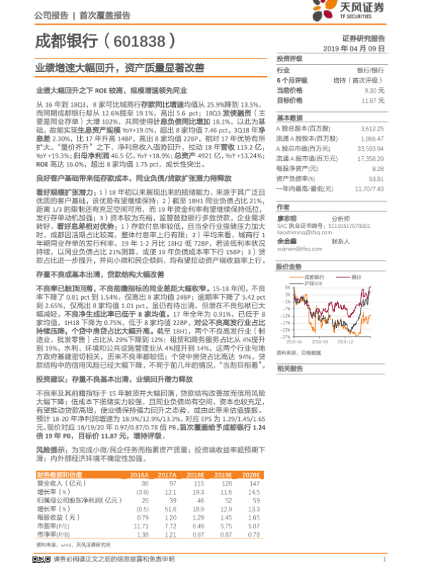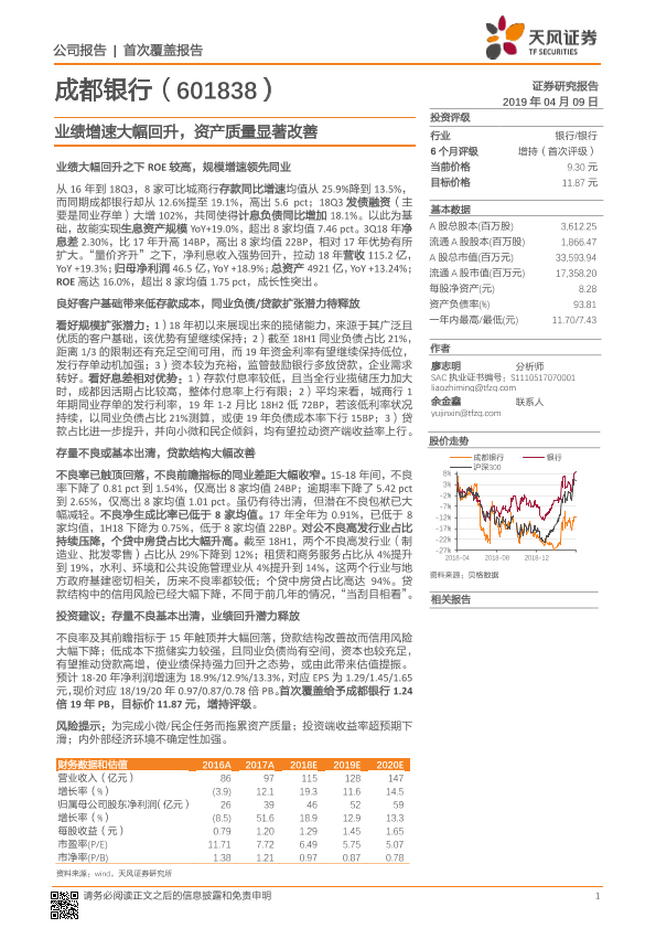 【天风证券】【20190409】20190409-天风证券-成都银行-601838.SH-业绩增速大幅回升,资产质量显著改善-24页