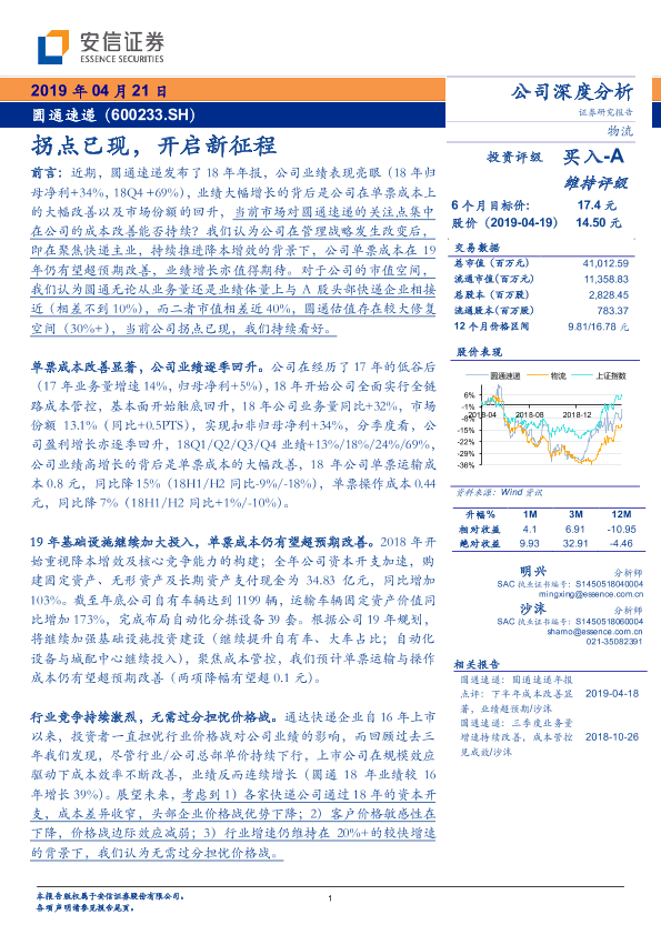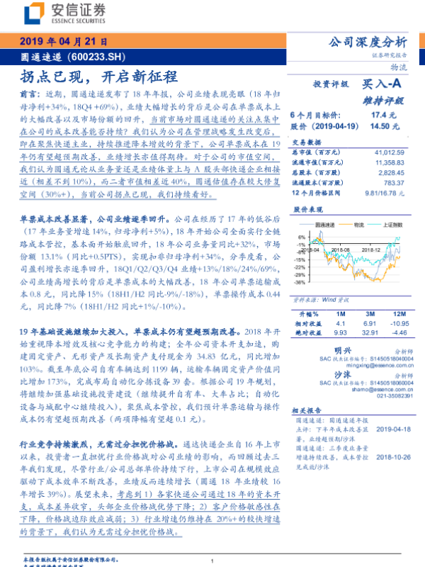 【安信证券】【20190421】圆通速递-600233.SH-拐点已现,开启新征程-21页