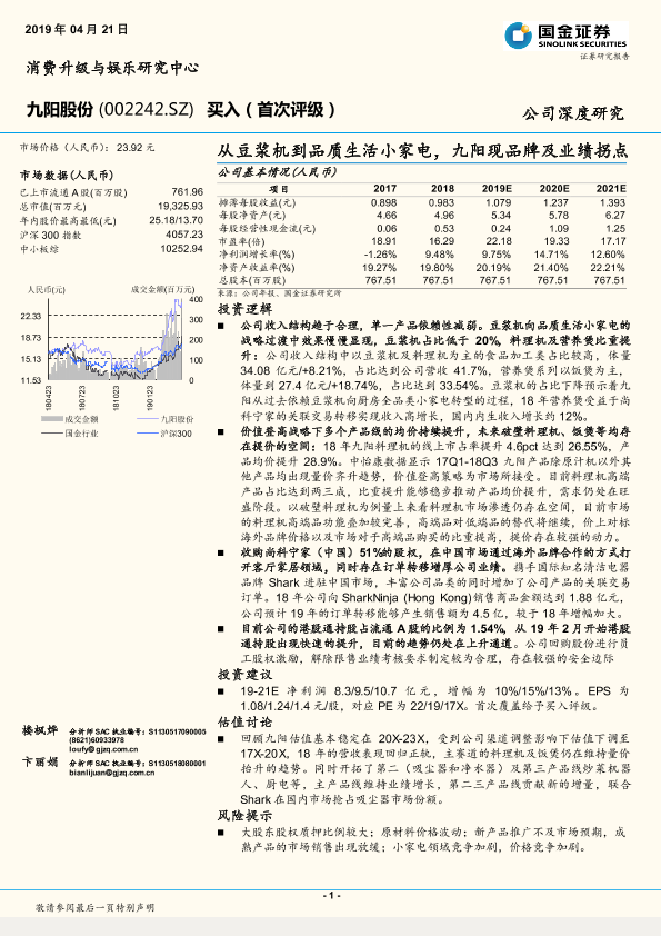 【国金证券】【20190421】从豆浆机到品质生活小家电,九阳现品牌及业绩拐点-22页