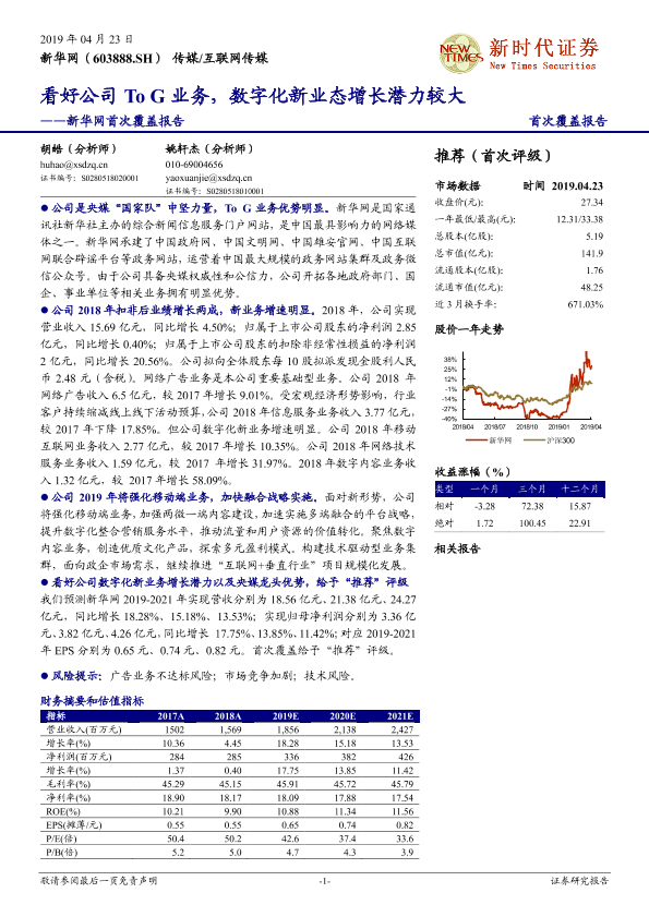 【新时代证券】【20190423】新华网首次覆盖报告:看好公司To G业务,数字化新业态增长潜力较大-22页