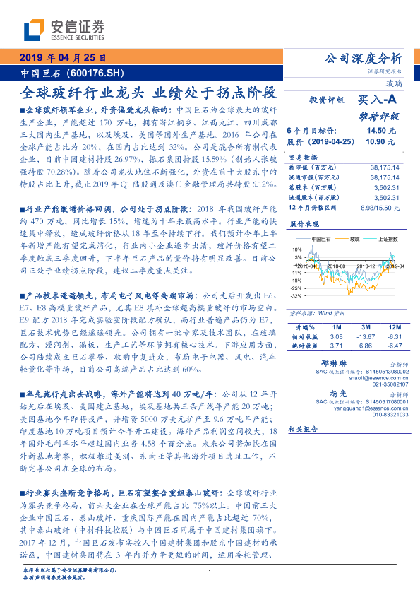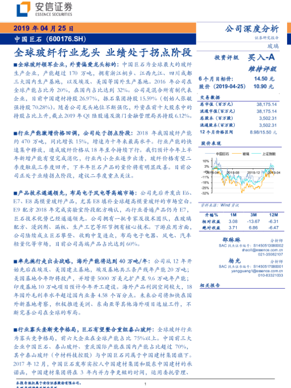 【安信证券】【20190425】全球玻纤行业龙头 业绩处于拐点阶段-33页