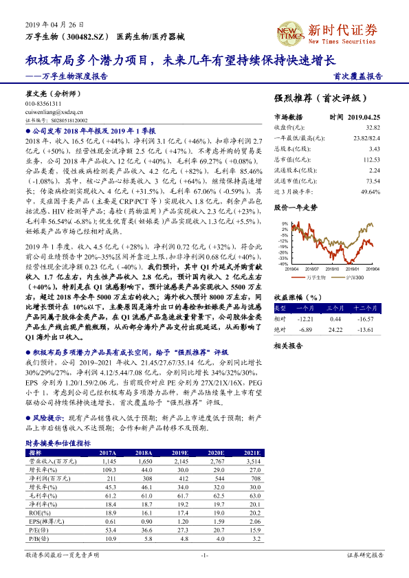 【新时代证券】【20190426】万孚生物深度报告:积极布局多个潜力项目,未来几年有望持续保持快速增长-11页