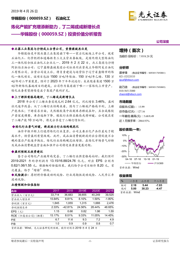 【光大证券】【20190426】华锦股份(000059.SZ)投资价值分析报告:炼化产能扩充增添新助力,丁二烯或成新增长点-30页