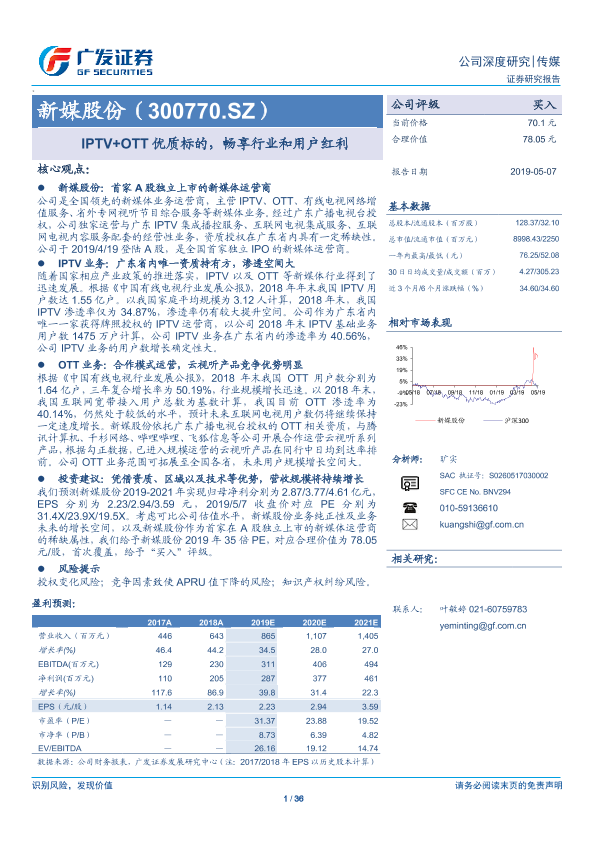 【广发证券】【20190507】新媒股份-300770.SZ-IPTV+OTT优质标的,畅享行业和用户红利-36页