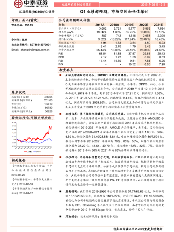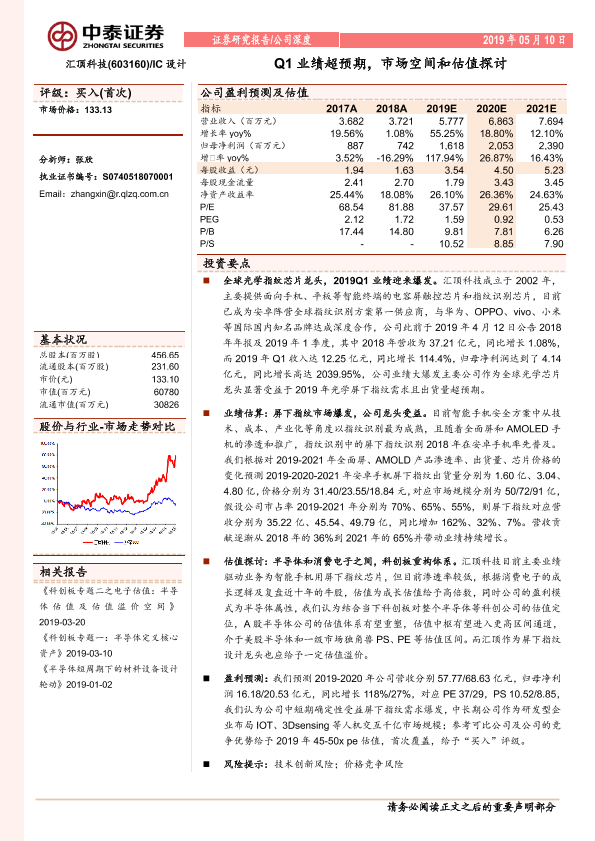 【中泰证券】【20190510】20190510-中泰证券-汇顶科技-603160.SH-Q1业绩超预期,市场空间和估值探讨-25页