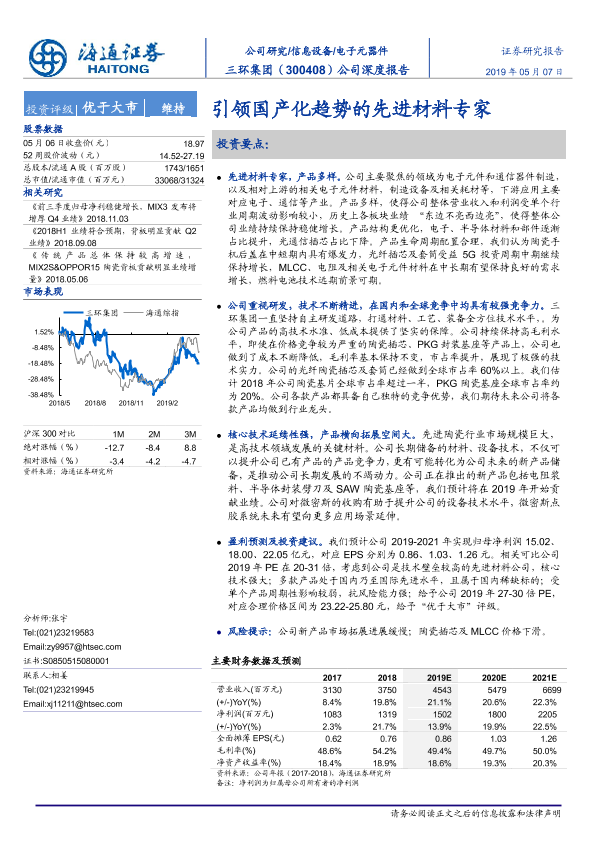【海通证券】【20190507】20190507-海通证券-三环集团-300408.SZ-公司深度报告:引领国产化趋势的先进材料专家-39页