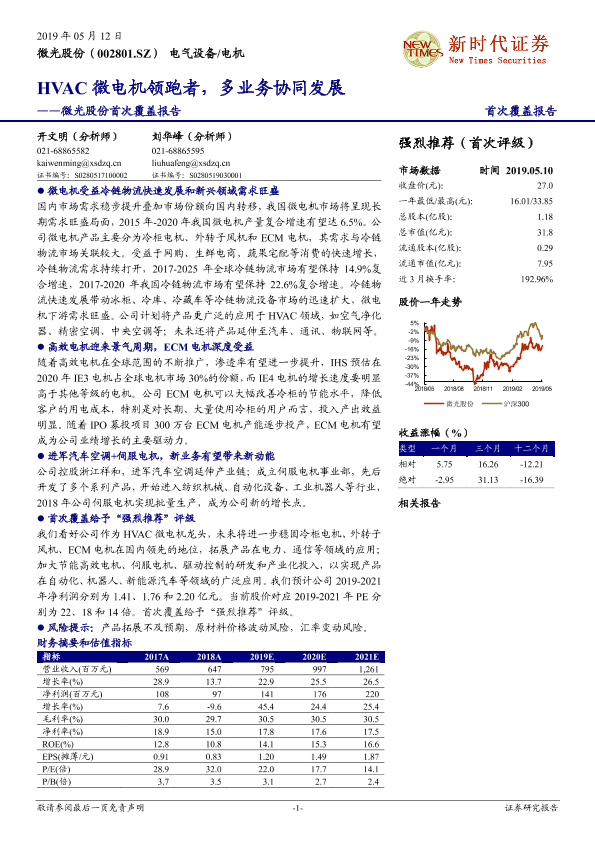 【新时代证券】【20190512】微光股份-002801.SZ-首次覆盖报告:HVAC微电机领跑者,多业务协同发展-25页