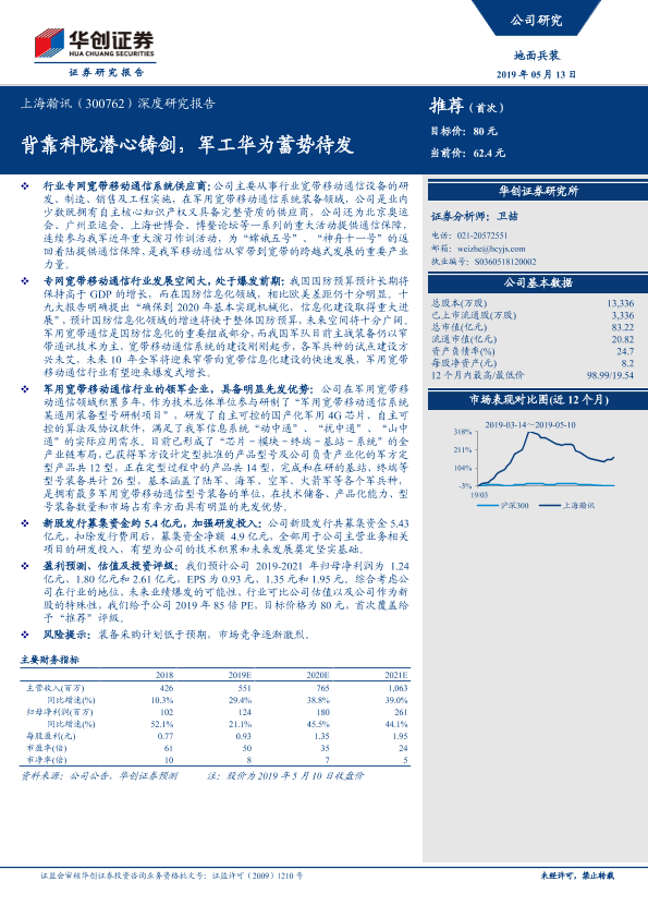 【华创证券】【20190513】20190513-华创证券-上海瀚讯-300762.SZ-深度研究报告:背靠科院潜心铸剑,军工华为蓄势待发-27页