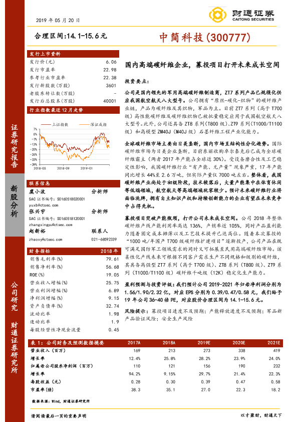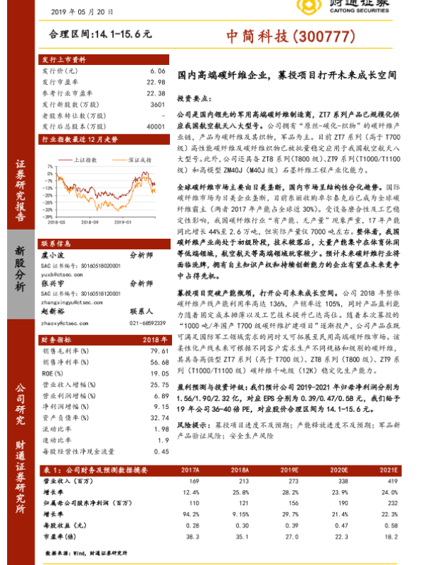 【财通证券】【20190520】国内高端碳纤维企业,募投项目打开未来成长空间-27页