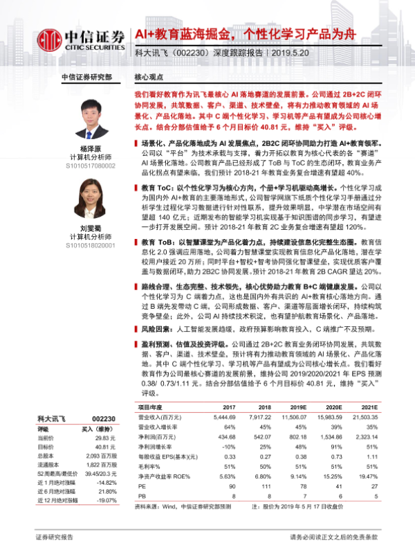 【中信证券】【20190520】AI+教育蓝海掘金,个性化学习产品为舟-40页