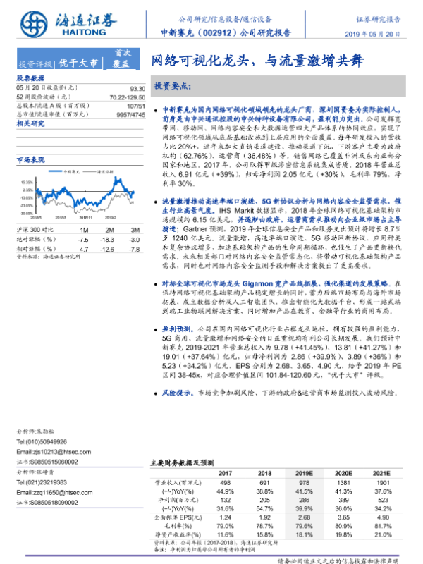 【海通证券】【20190520】中新赛克-002912.SZ-网络可视化龙头,与流量激增共舞-33页