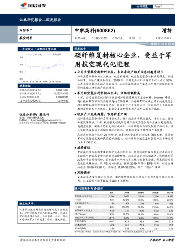 【国信证券】【20190522】20190522-国信证券-中航高科-600862.SH-碳纤维复材核心企业,受益于军用航空现代化进程-42页
