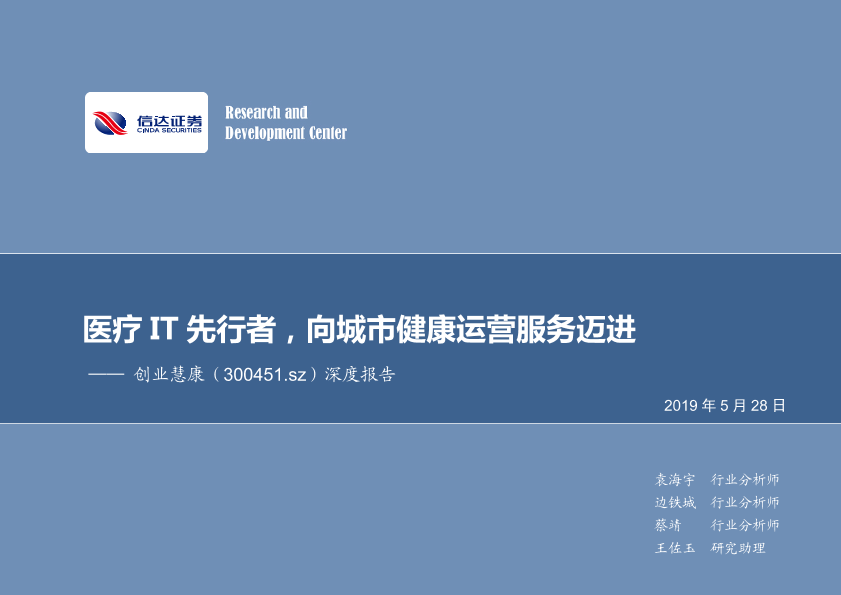 【信达证券】【20190528】医疗IT先行者,向城市健康运营服务迈进-25页