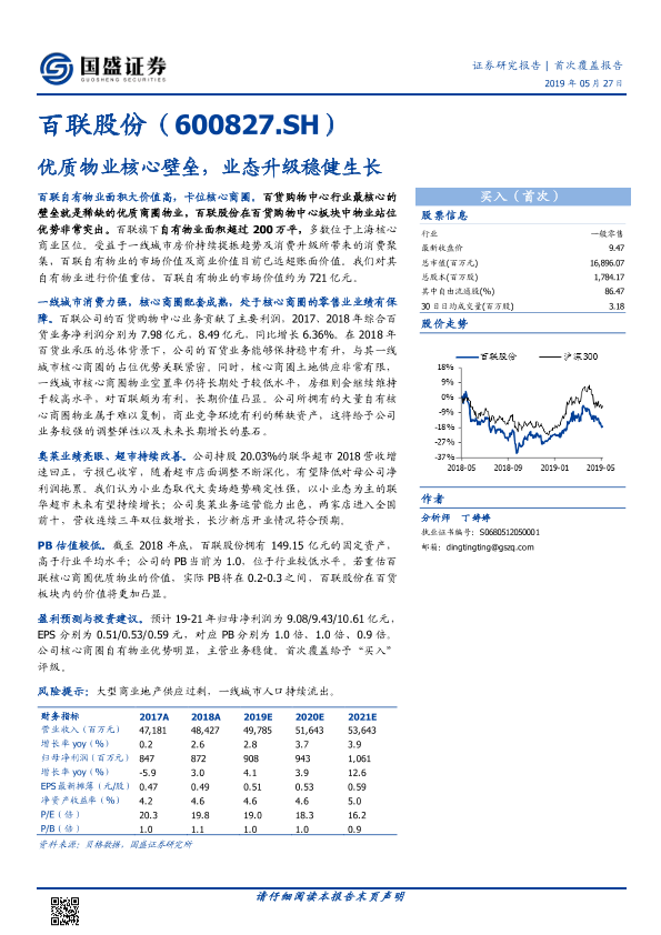 核心商圈 物业价值 百货购物中心 零售业 百联股份