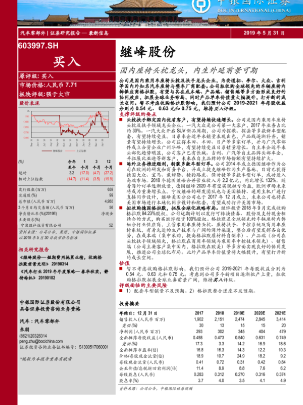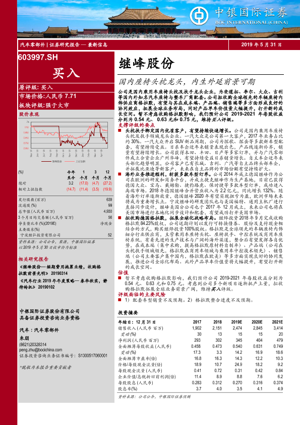 【中银证券】【20190531】继峰股份-国内座椅头枕龙头,内生外延前景可期-37页
