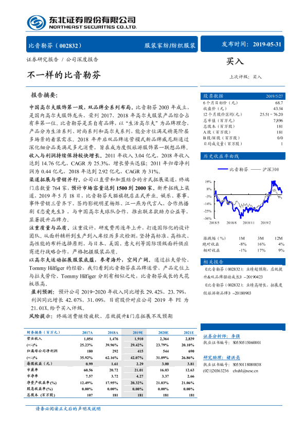 市场趋势 服装行业 比音勒芬 证券研究 财务分析