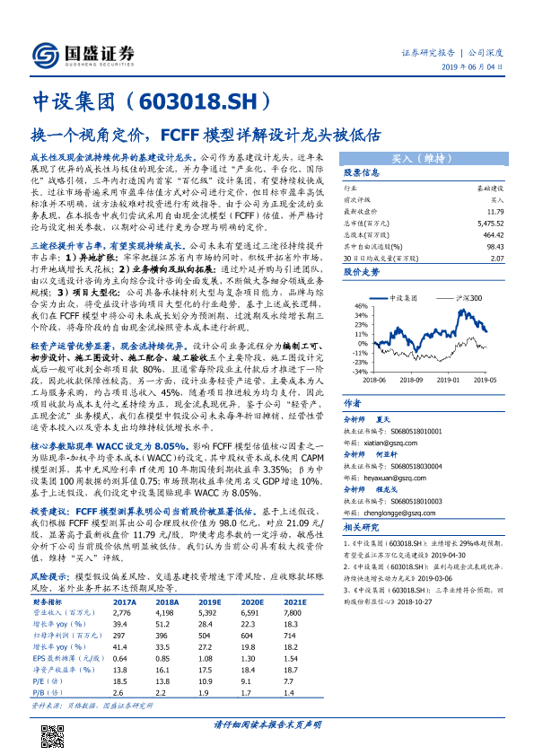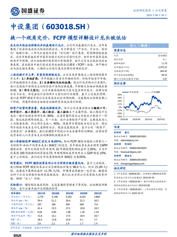FCFF模型 中设集团 估值分析 基建设计 现金流