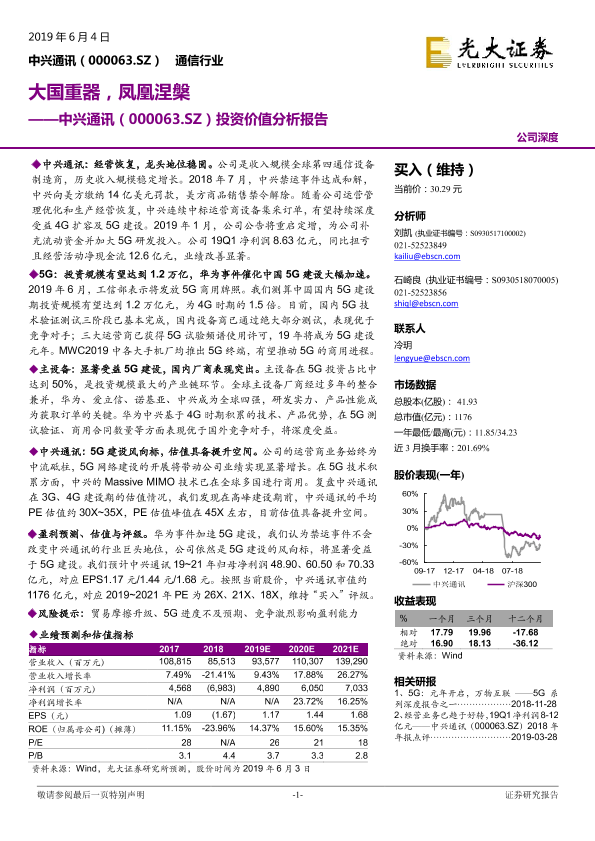 【光大证券】【20190604】中兴通讯-000063.SZ-投资价值分析报告:大国重器,凤凰涅槃-41页