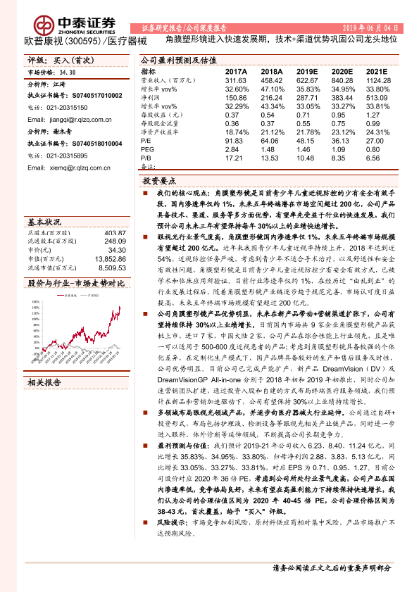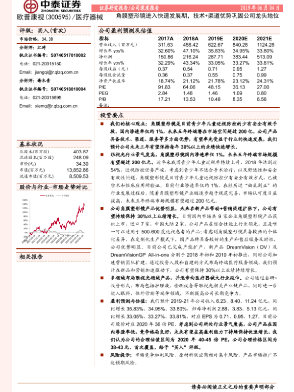 【中泰证券】【20190604】中泰证券-欧普康视-300595.SZ-角膜塑形镜进入快速发展期,技术+渠道优势巩固公司龙头地位-18页