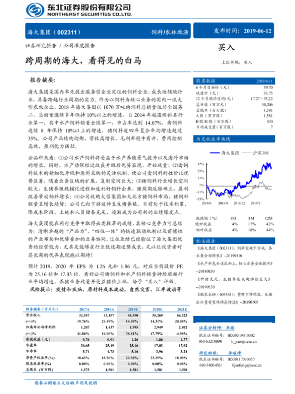 【东北证券】【20190612】20190612-东北证券-海大集团-002311.SZ-跨周期的海大,看得见的白马-33页