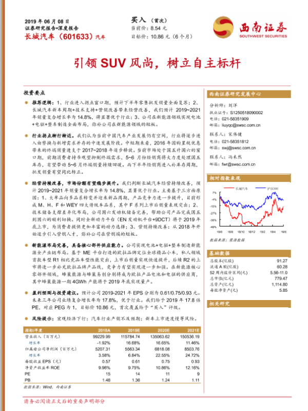 【西南证券】【20190608】20190608-西南证券-长城汽车-601633.SH-引领SUV风尚,树立自主标杆-44页