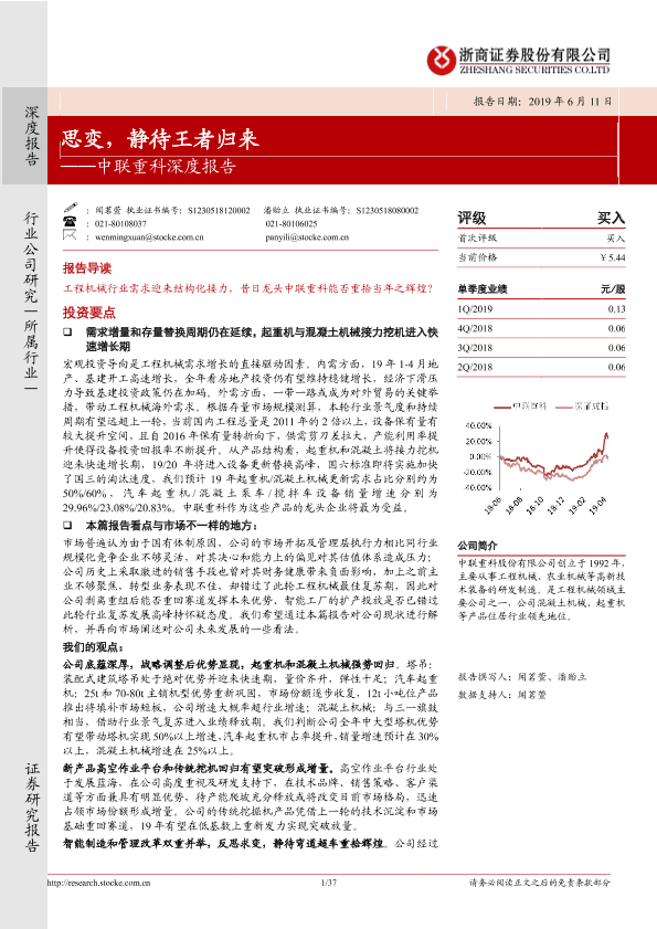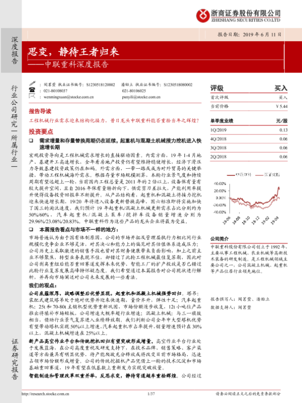 【浙商证券】【20190611】中联重科深度报告:思变,静待王者归来-37页