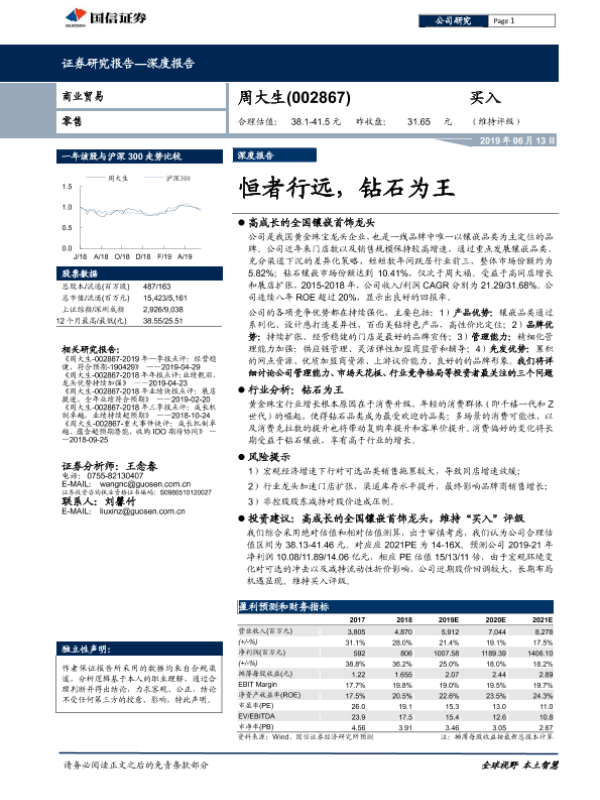 周大生 投资建议 证券分析 钻石镶嵌 黄金珠宝
