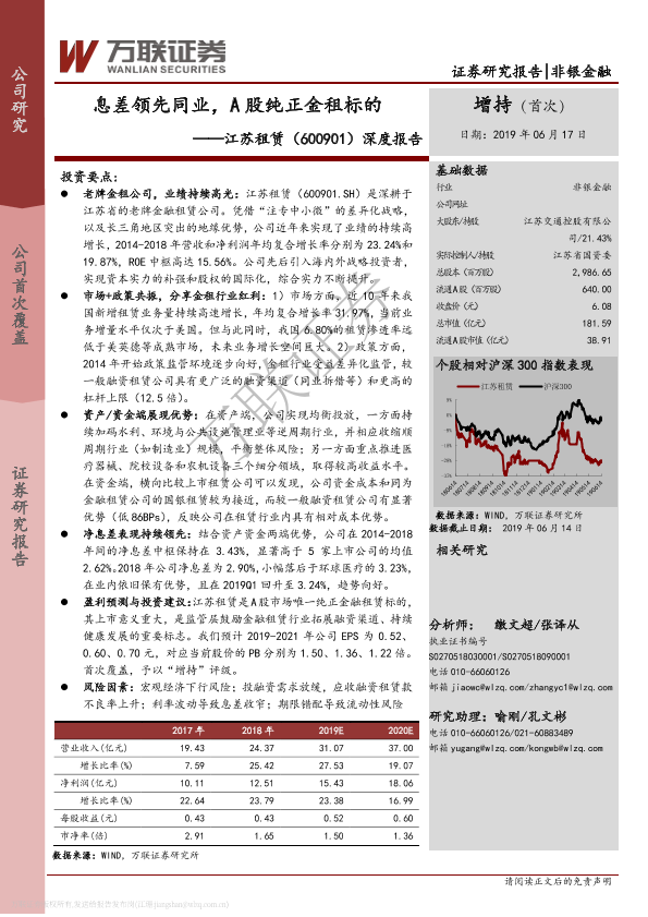 【万联证券】【20190617】20190617-万联证券-江苏租赁-600901.SH-深度报告:息差领先同业,A股纯正金租标的-24页