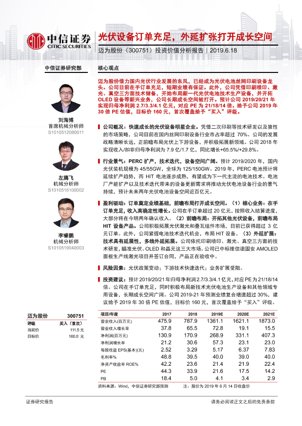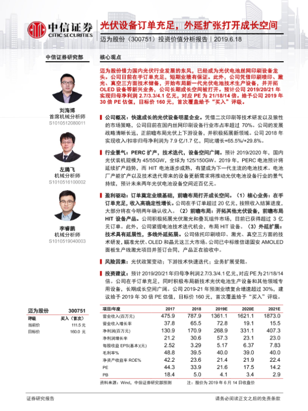 【中信证券】【20190618】迈为股份-300751.SZ-投资价值分析报告:光伏设备订单充足,外延扩张打开成长空间-21页