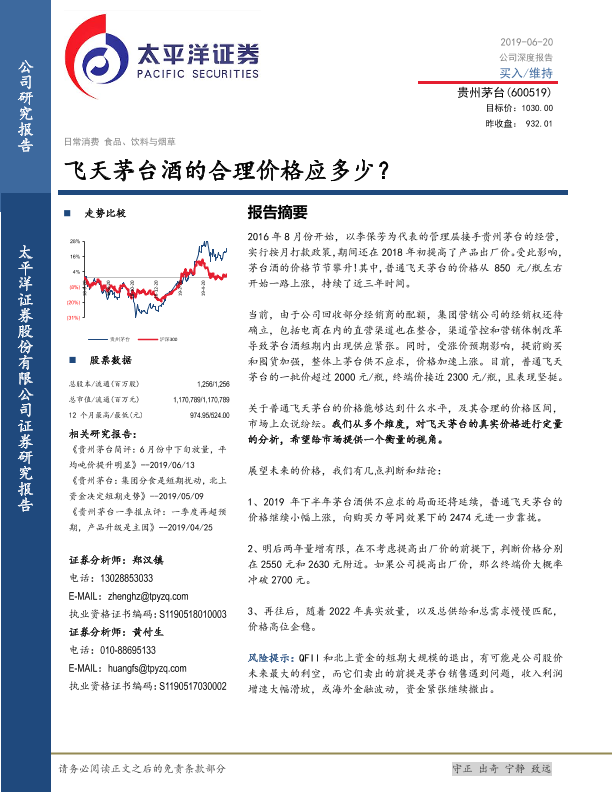 【太平洋证券】【20190620】飞天茅台酒的合理价格应多少?-9页