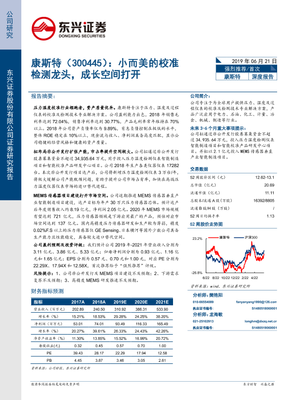 【东兴证券】【20190621】康斯特(300445):小而美的校准检测龙头,成长空间打开-20页