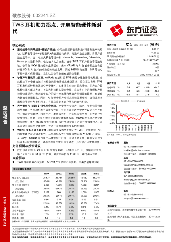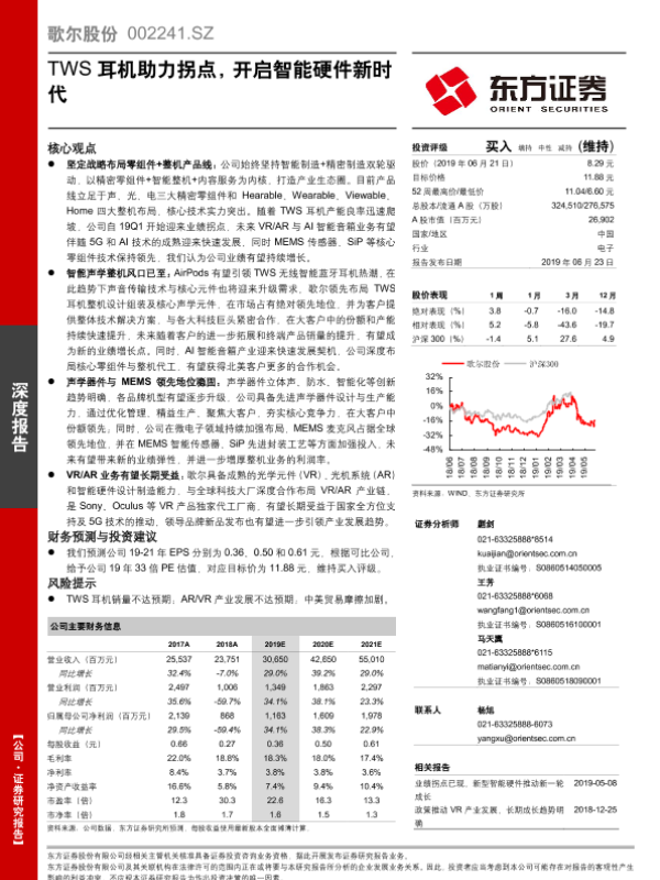 【东方证券】【20190623】歌尔股份深度报告 —— TWS耳机助力拐点,开启智能硬件新时代-28页