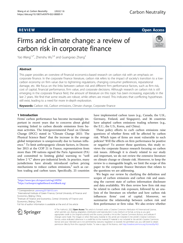 【Wang Yao】【20220101】公司与气候变化:公司金融领域碳风险研究进展-10页