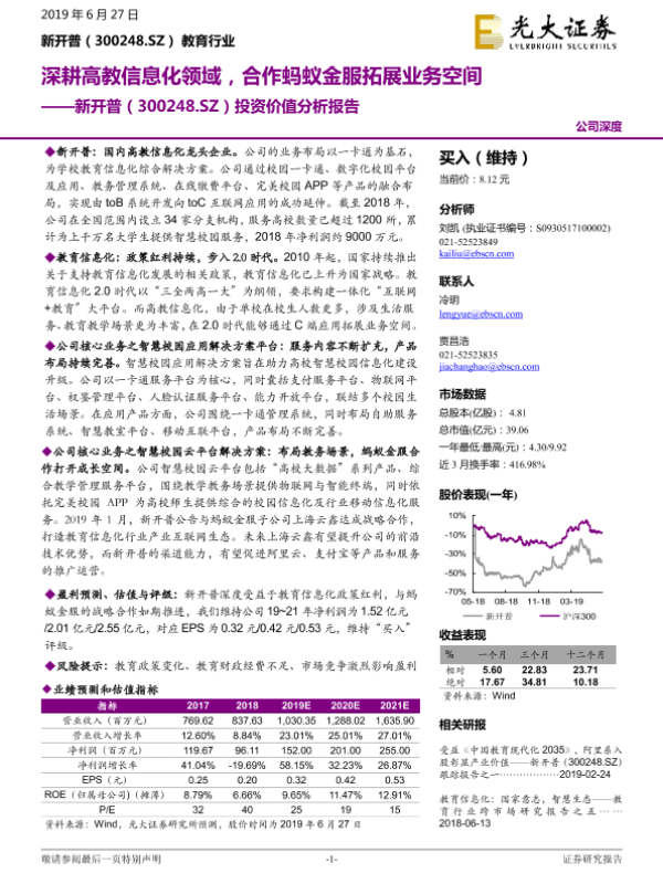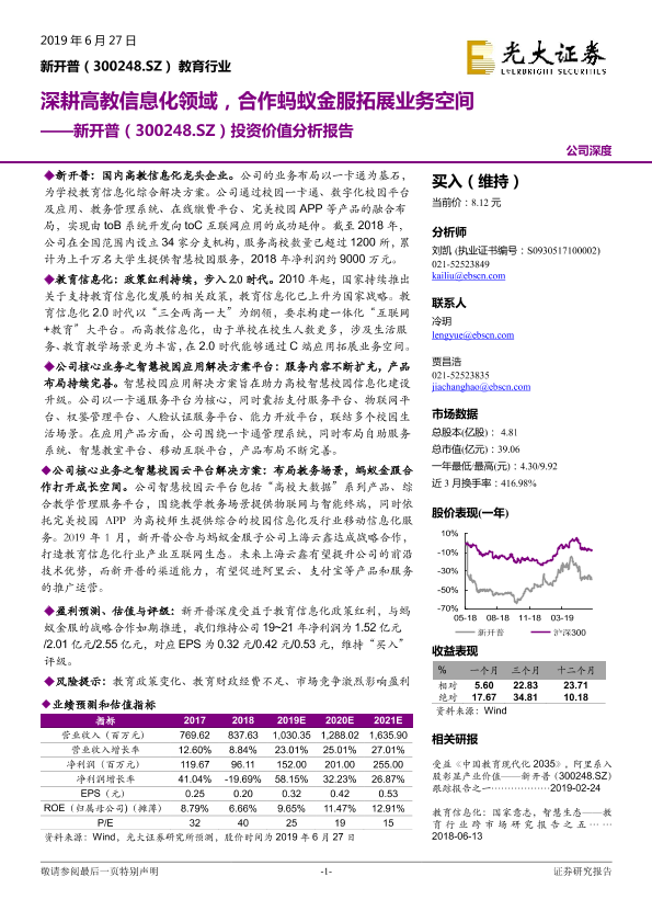 【光大证券】【20190627】新开普-300248.SZ-投资价值分析报告:深耕高教信息化领域,合作蚂蚁金服拓展业务空间-29页