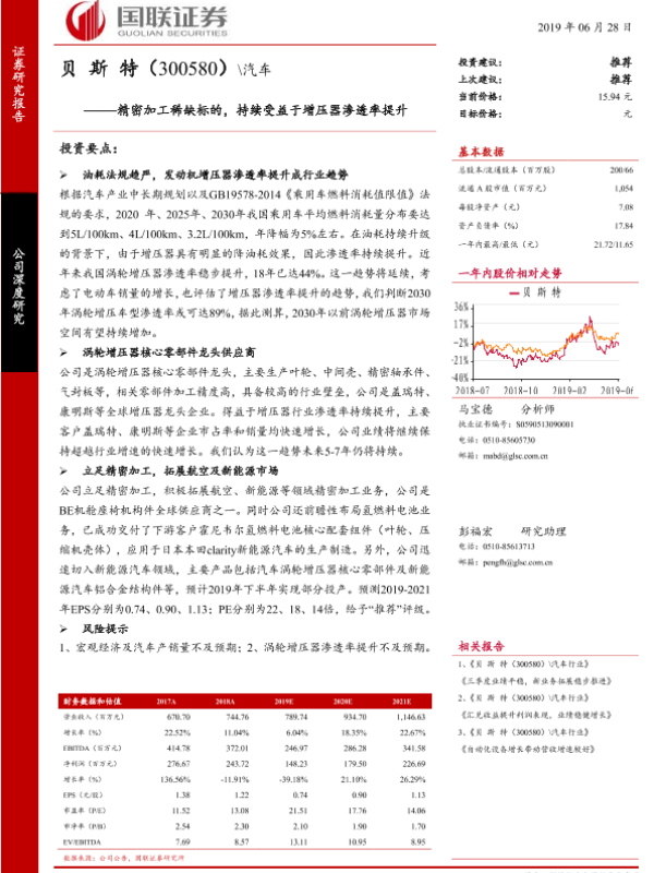 【国联证券】【20190628】贝斯特(300580)—精密加工稀缺标的,持续受益于增压器渗透率提升-25页