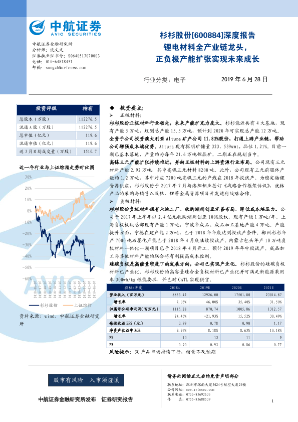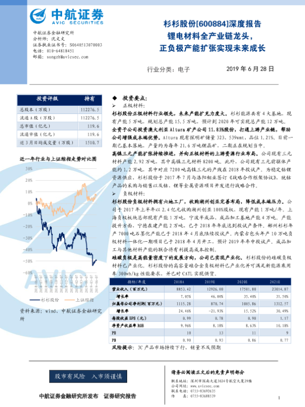 【中航证券】【20190628】20190628-中航证券-杉杉股份-600884.SH-深度报告:锂电材料全产业链龙头,正负极产能扩张实现未来成长-24页