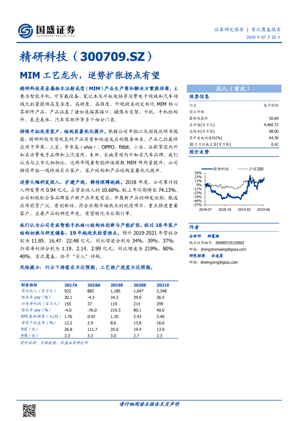 【国盛证券】【20190702】精研科技-MIM工艺龙头,逆势扩张拐点有望-25页