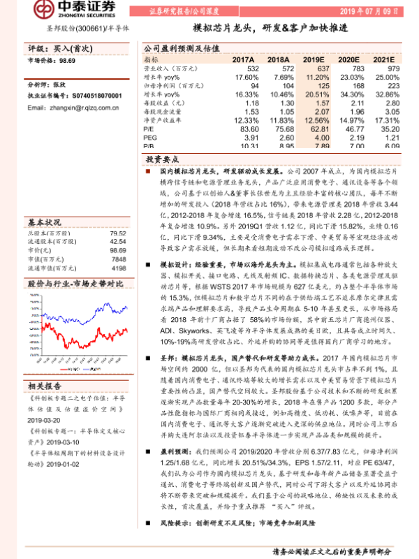 【中泰证券】【20190709】20190709-中泰证券-圣邦股份-300661.SZ-模拟芯片龙头,研发&客户加快推进-21页