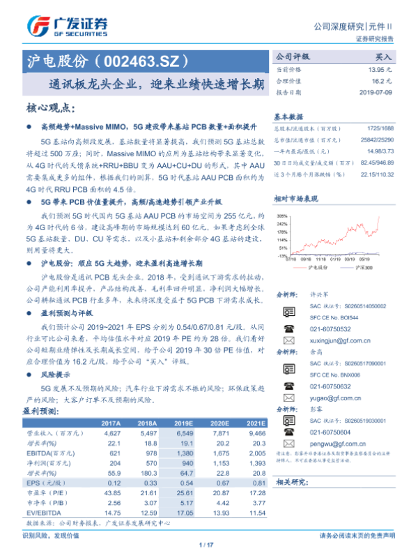 【广发证券】【20190709】通讯板龙头企业,迎来业绩快速增长期-17页