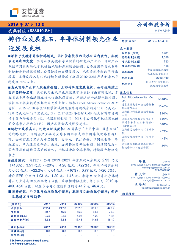【安信证券】【20190713】铸行业发展基石,半导体材料领先企业迎发展良机-21页