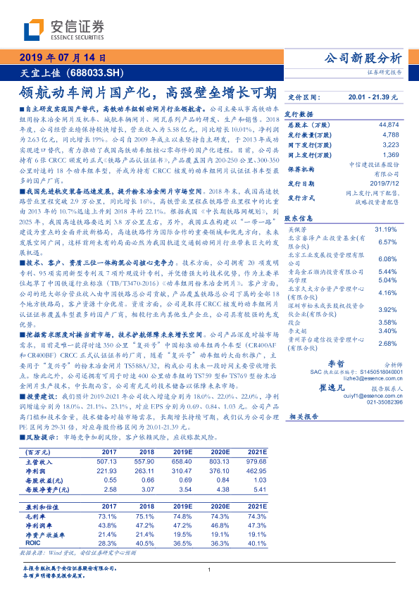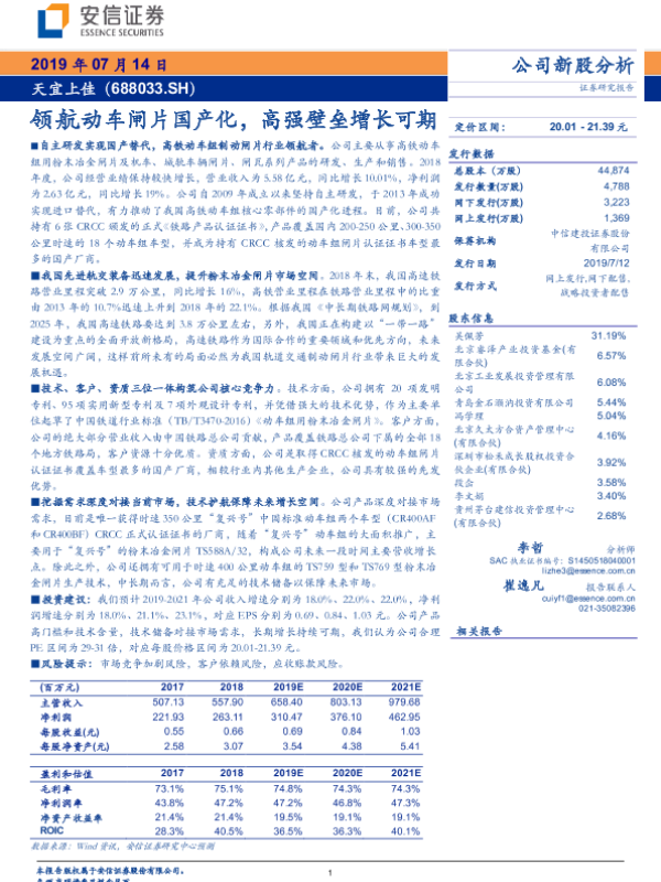 【安信证券】【20190714】领航动车闸片国产化,高强壁垒增长可期-25页