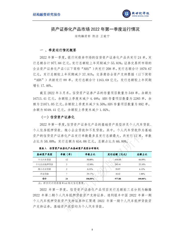 【新世纪评级】【20220101】资产证券化产品市场2022年第一季度运行情况-7页