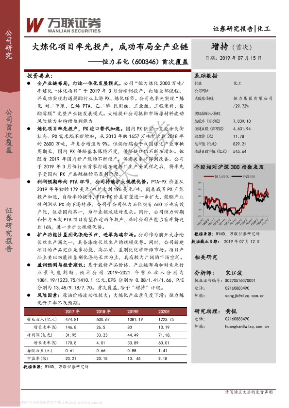 【万联证券】【20190715】20190715-万联证券-恒力石化-600346.SH-首次覆盖:大炼化项目率先投产,成功布局全产业链-25页