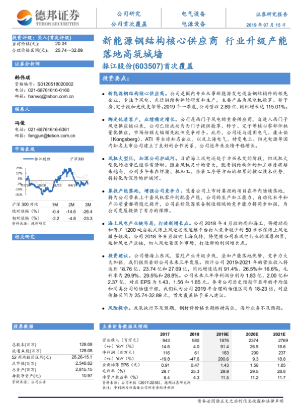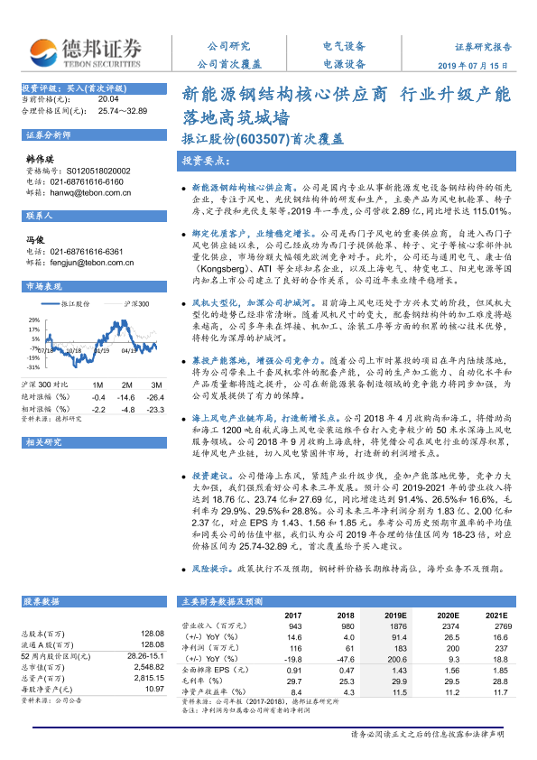 【德邦证券】【20190715】20190715-德邦证券-振江股份-603507.SH-新能源钢结构核心供应商 行业升级产能落地高筑城墙-28页