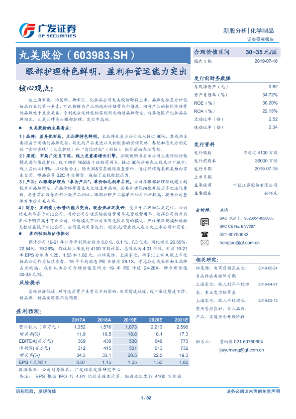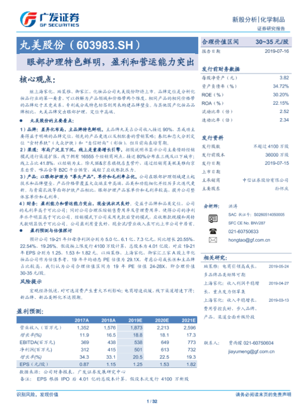 【广发证券】【20190716】20190716-广发证券-丸美股份-603983.SH-眼部护理特色鲜明,盈利和营运能力突出-32页
