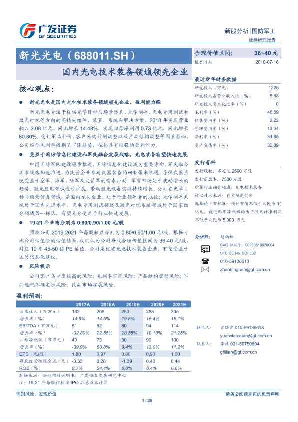 【广发证券】【20190718】新光光电(688011.SH):国内光电技术装备领域领先企业-25页