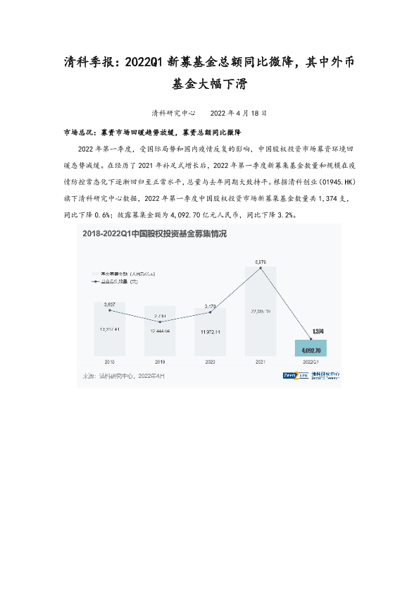 【清科研究中心】【20220418】清科季报:2022Q1新募基金总额同比微降,其中外币基金大幅下滑-6页